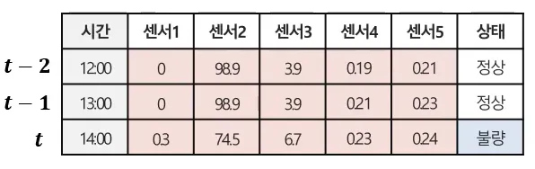 e.g.) 17:00 상태를 예측할 때 센서 1 ~ 5의 변수를 활용하는 것도 중요하지만, 이전 시점(16:00의 상태와 센서 값들의 정보도 영향을 줄 수 있다는 뜻!