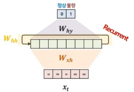 - t 시점의 y를 예측하는 파라미터 → $W_{hy}$
